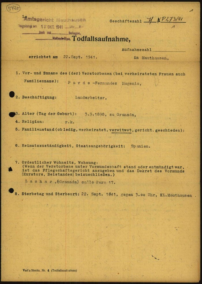 Como decimos, Armando fue internado en Mauthausen, muriendo finalmente en Güssen.[4] Armando fue uno de los miles de republicanos españoles internados en campos de concentración nazi. El 5 de mayo de 1945 era liberado el campo de Mauthausen bajo una inmensa pancarta en castellano, “los antifascistas españoles saludan a las fuerzas libertadoras”. Sin embargo, los españoles no eran el colectivo más numeroso, lo que debe hacernos entender la significación que fueron adquiriendo los republicanos españoles, situación muy desconocida aún en la población de nuestro país (Del Río, 2013: 22). Desgraciadamente Armando perdió antes la vida; un héroe que luchó por los derechos de los trabajadores, que combatió al fascismo y que fue asesinado en los campos de concentración nazi cuya memoria aún no había sido reparada. Un verdadero héroe que representa lo mejor de la tradición democrática del municipio de Láchar. Su historia debe ser conocida por todos. Recordar su historia es reivindicar nuestra memoria como pueblo y como clase.