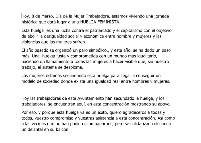Previamente, las empleadas del Ayuntamiento recibieron una carta firmada por la alcaldesa del municipio, Lucrecia Rienda, en la que les invitaban a sumarse al paro el jueves, 8 de marzo.