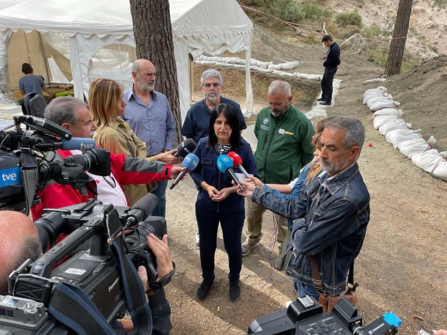 En una visita al Barranco, con la subdelegada del Gobierno de España en Granada, Inmaculada López Calahorro, y el alcalde de Víznar, Joaquín Caballero, los profesores de la UGR Francisco Carrión, que lidera la excavación, y Rafael Gil Bracero, presidente de la AGRMH, han informado a los periodistas de esos primeros resultados y los detalles de la tercera campaña de exhumación.