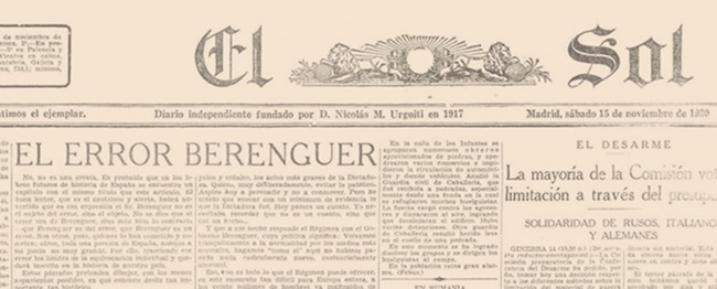 - [1] “El error Berenguer” se publicó en primera página de El Sol el 15 de noviembre de 1930.