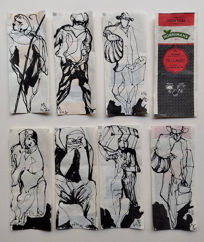 En la otra, Miguel Carini incorpora la soledad del artista, el ansia expresiva desbordada, sujeta por el imperativo del confinamiento. Tiempos oscuros, temerosos, aislados, tenebrosos, donde el impulso creativo quería mostrar su impronta, de sueños y recuerdos, realidades y deseos.