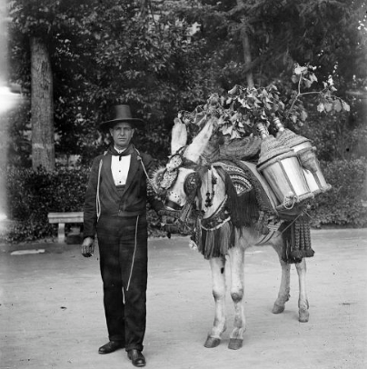 Vendedor ambulante de leche en la cuesta de San José (Albayzín). De Granada Gráfica, 1930.