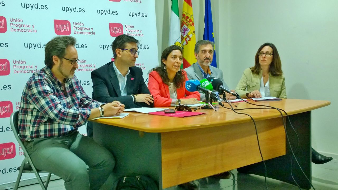 Mayte Olalla con miembros de su candidatura, en la presentación del programa. Prensa upyd