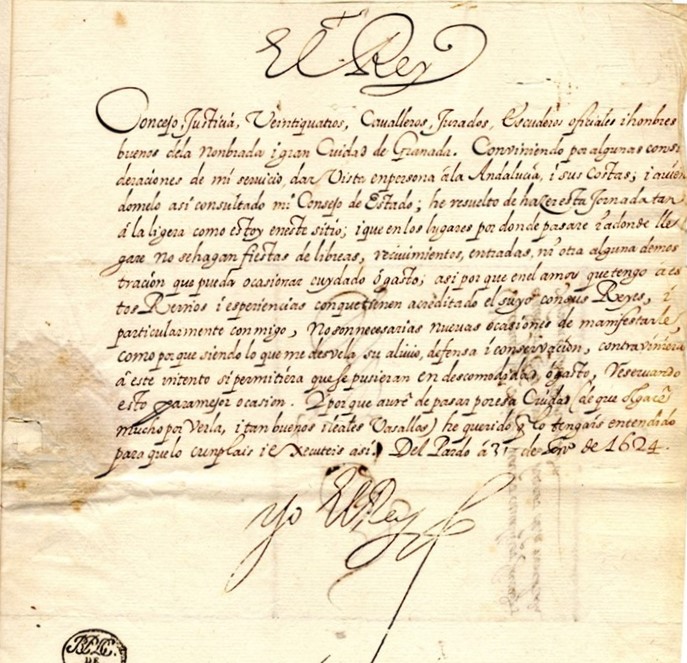 El Rey había remitido una carta a todas las ciudades andaluzas que pensaba visitar en su periplo de 69 días advirtiéndoles que no deseaba ser recibido con ostentaciones y grandes lujos que ocasionaran gastos para las arcas municipales. Pero los concejos hicieron caso omiso, no respetaron la orden y montaron sus parafernalias festivas. Granada no había recibido la visita de un rey desde hacía más de un siglo; las últimas visitas fueron de los Reyes Católicos a principios del siglo XVI (Si exceptuamos la del Príncipe Felipe II cuando vino a traer el cadáver de su madre en 1539). Por eso, todo fueron músicas y fuegos artificiales a base de pólvora negra. La cohetería se fabricaba en Granada, que por entonces contaba con varios molinos de pólvora de envergadura dentro del casco urbano. Los cronistas que le acompañaban (entre ellos Francisco de Quevedo) dejaron constancia de que el Rey tuvo que correr las cortinillas de su carruaje para que no inundara el habitáculo el molesto humo que desprendía la pólvora de entonces.
