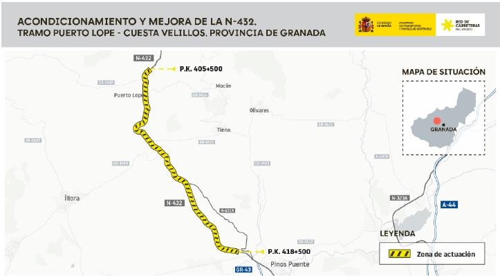 La N-432 constituye el principal eje de comunicación entre Córdoba y Granada, vertebrando un corredor por el que se mueven más de 350.000 habitantes. El tramo objeto del estudio abarca los puntos kilométricos 405+500 (Puerto Lope) y 418+500 (Cuesta de Velillos).