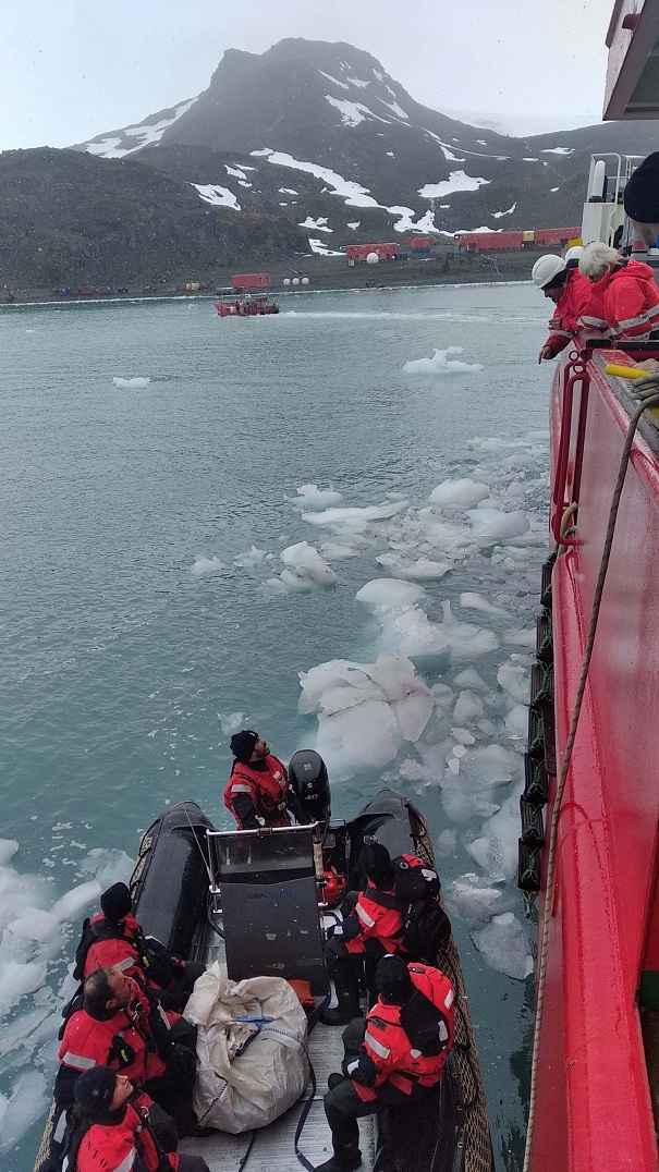 Por estos motivos, el protocolo de apertura de la BAE de esta campaña ha sido más complejo que otros años. Se instalaron dos estaciones sísmicas antes de entrar en la Isla Decepción. El desplazamiento se realizó en zodiac desde el barco en el exterior de la Isla de Decepción y cerca de los Fuelles de Neptuno. Después de analizar los datos y realizar una inspección visual por el exterior de la Isla, se comprobó que la actividad sísmica estaba en niveles normales sin evidencias de reactivación volcánica importante y, por tanto, sin ningún peligro para entrar al interior de la Isla con el buque Sarmiento de Gamboa.
