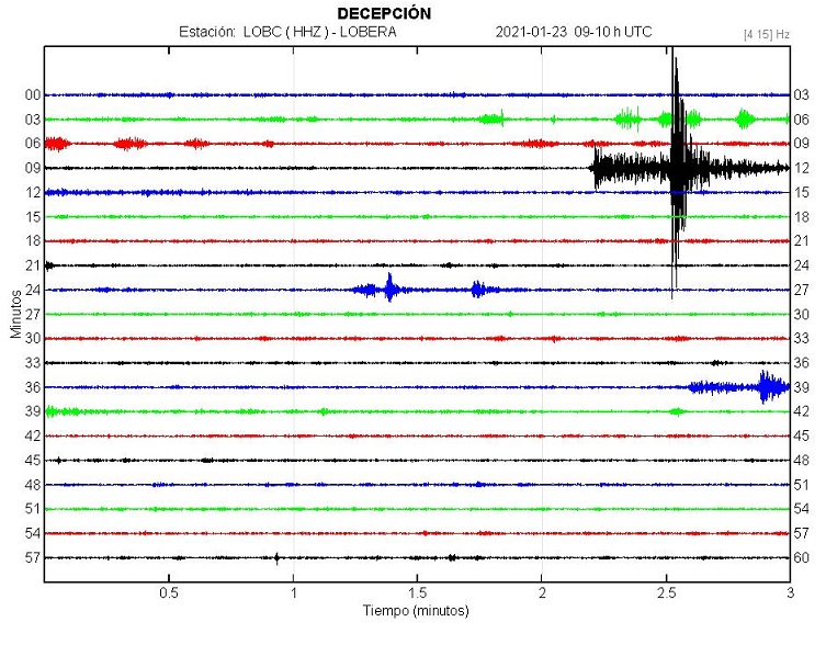 Registro de la actividad en la Isla Decepción en el comienzo de la apertura con terremotos regionales del Estrecho de Bransfield. ugrdivulga