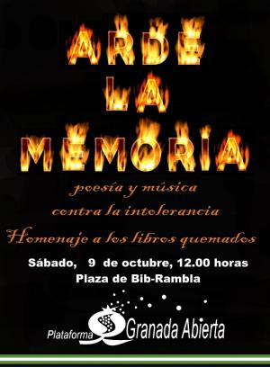 Granada Abierta organiza 'Arde la Memoria', en homenaje a los libros prohibidos y quemados