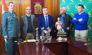 La Guardia Civil ha recuperado una talla de San Juan Bautista Niño (San Juanito) con nimbo, lábaro sacramental y concha de plata, pertenecientes al retablo de Nuestra Señora del Rosario, del siglo