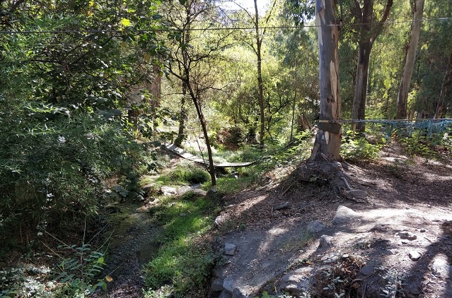 El resto de los asentamientos se encuentran un poco más arriba, en una zona muy frondosa en torno al arroyo que más abajo forma el río Sucio, donde residen varias decenas de personas, incluso famlias enteras con hijos, en tiendas de campaña, chozas y diversos tipos de construcciones rudimentarias, sin red de electricidad ni de agua potable.