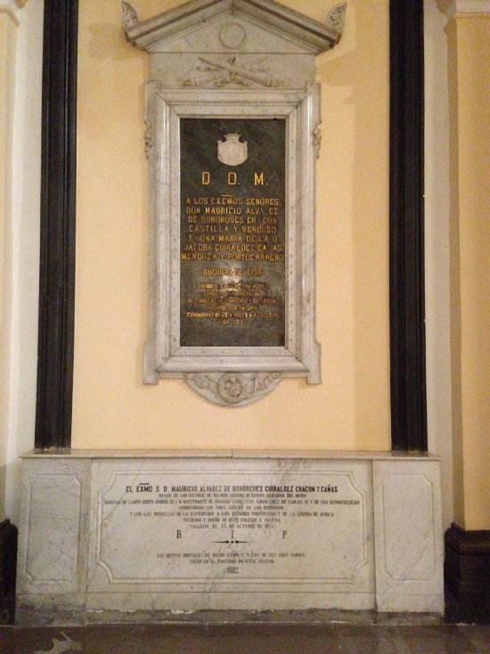 Placas en la Iglesia de San José de Calasanz que recuerdan quienes eran sus propietarios y tienen aquí su panteón familiar desde 1859.