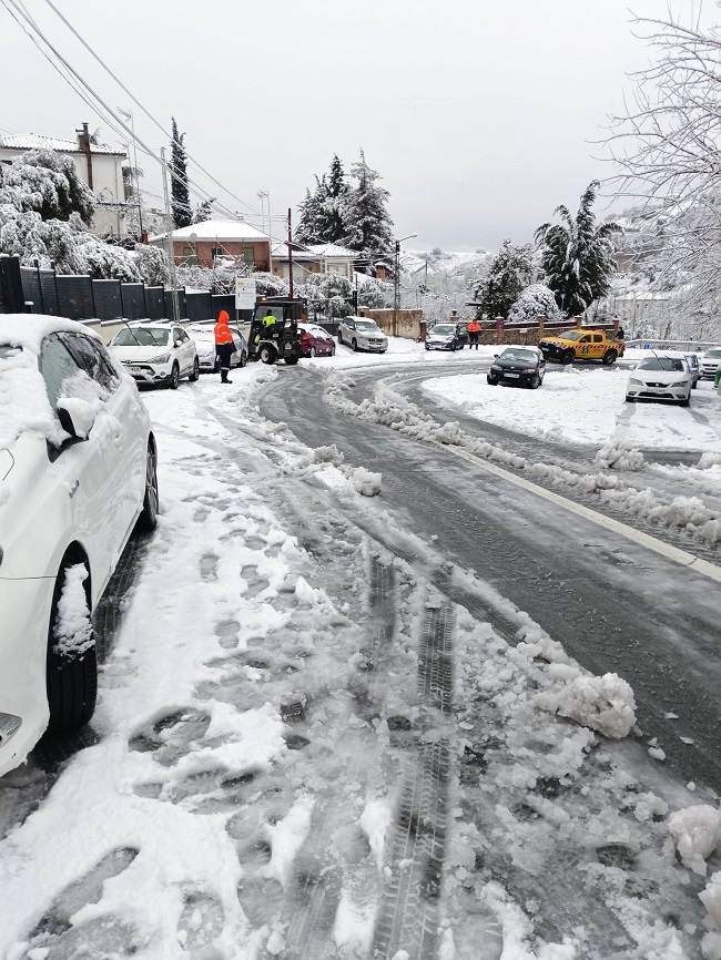 Esa llamada a la precaución también la hizo la Policía Local de Granada, dado que los problemas para circular por la nieve se registraron igualmente en la carretera de El Fargue, la A-4002, del kilómetro 5 al 8,2, nivel rojo, con restricción a la circulación para vehículos pesados y obligación de uso de cadenas o neumáticos de invierno para el resto de vehículos.