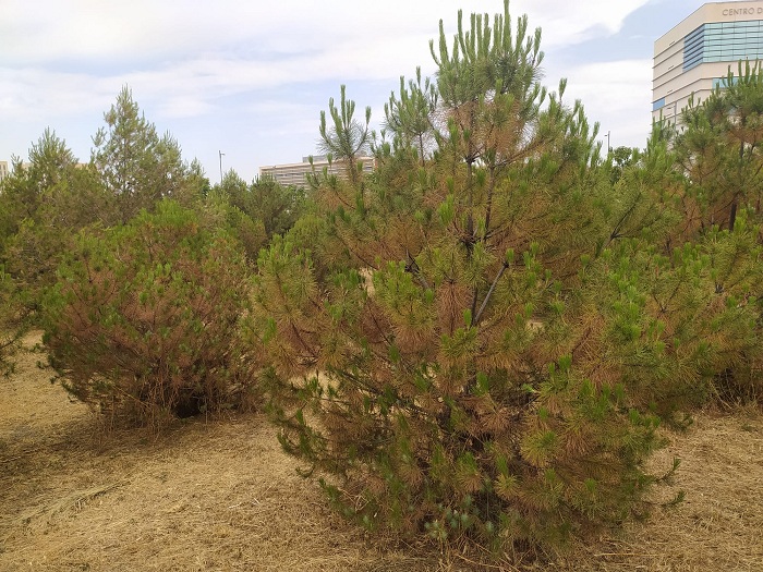 Los pinos del parque del PTS se secan
