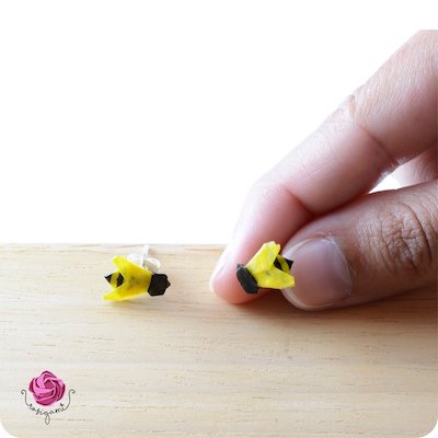“Un verano, en el que conocí a mi pareja, le hice una rana de origami y él me retó a doblar la más pequeña y la más grande que fuera capaz de hacer. La pequeña terminé doblándola con unas pinzas y me gustó mucho la experiencia.....Volví al trabajo al terminar las vacaciones pero seguí haciendo figuritas de papel y fue mi pareja quien me sugirió darles algún uso, como por ejemplo convertirlas en piezas de bisutería o decoración". Su pareja es Pablo Arellano, ilustrador y diseñador, que ideó la marca y se encargó de de crear los soportes de cartón donde van los pendientes para su venta.