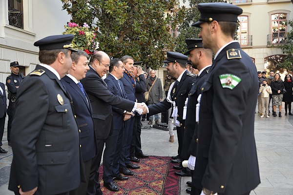 Doce nuevos agentes han tomado posesión como nuevos funcionarios de la Policía Local de Granada. El acto, sin el alcalde, ha estado presidido por el primer teniente de alcalde y concejal de Presidencia, Contratación y Relaciones Institucionales, Sebastián Pérez, y ha contado con el secretario general de Interior y Espectáculos Públicos de la Junta, Miguel Briones, el director general de Emergencias y Protección Civil de Andalucía, Agustín Muñoz, además de representantes de la Policía Nacional, Autonómica y Guardia Civil.
