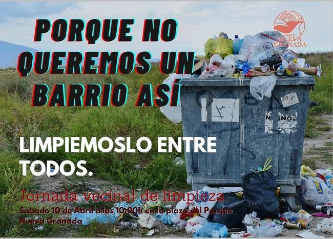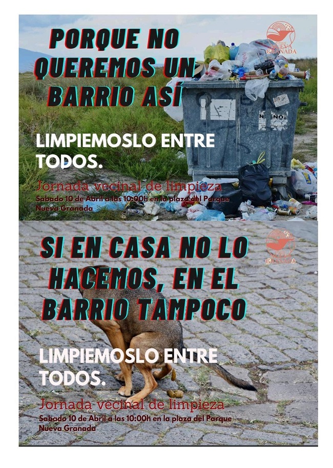 La Asociación de Vecinos de Parque Nueva Granada ha organizado una singular iniciativa para concienciar sobre la responsabilidad ciudadana para mantener limpio el barrio. Así, el próximo sábado, a las 10.00 horas, ha convocado a vecinos y vecinas a que se sumen a una limpieza de las calles.