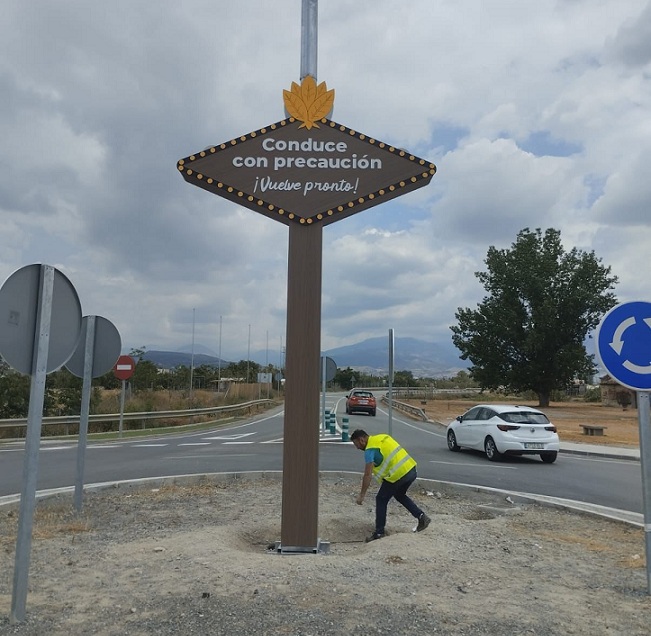 Se trata de una original iniciativa de las concejalías de Turismo y Obras y Servicios, que ha instalado una réplica del famoso cartel de Nevada pero adaptándolo al entorno de la Vega granadina, con acabados en madera de chopo y una hoja de tabaco en la parte de arriba, en recuerdo al famoso cultivo ya casi extinto en la comarca y los secaderos de tabaco.