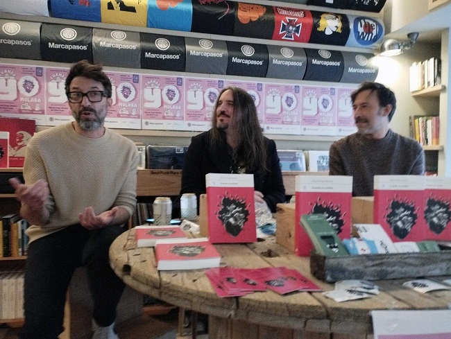 En la presentación, Miguel Ángel estuvo escoltado por los hermanos Marce ‘Becerring’ (Ruta 66 y autor de una biografía de Alex Chilton) y Antonio Jesús Moreno ‘El ciento’, conocido ilustrador también responsable de la portada.