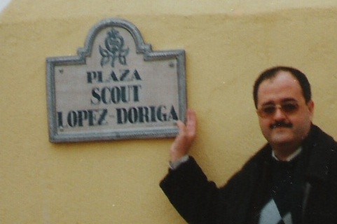 López-Dóriga, siendo ya deán de la Catedral de Granada, vestido con el traje de scout.