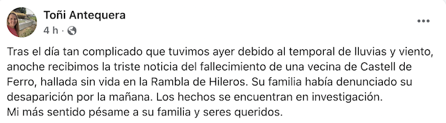 "Esa rambla ayer era muy peligrosa, la Policía Local estuvo actuando para evitar que circularan los vehículos porque era peligroso (...) estamos muy impactados con la noticia", ha narrado la regidora en declaraciones a Canal Sur Televisión.