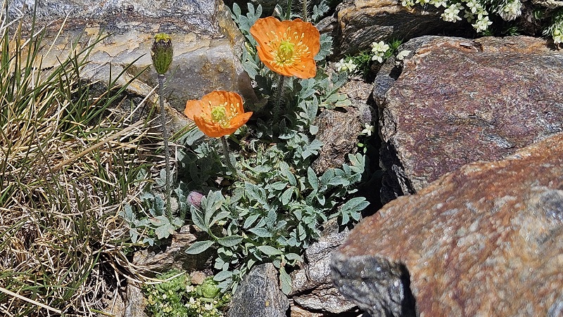 La amapola del Mulhacén (Papaver lapeyrousianum) es una llamativa amapola de color anaranjado que únicamente habita en la alta montaña de los Pirineos y Sierra Nevada. En este último espacio natural existe una sola población, localizada en la cima del Mulhacén, entre los 3.250 y 3.450 metros de altitud. En el marco de este programa, se está ensayando la creación de una segunda población en la cima del Veleta, a 3.350 metros de altitud.