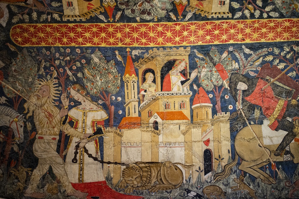 Las otras dos bóvedas describen diversas representaciones cortesanas, como por ejemplo desafíos entre caballeros, cristiano y musulmán, por la mano de una doncella.