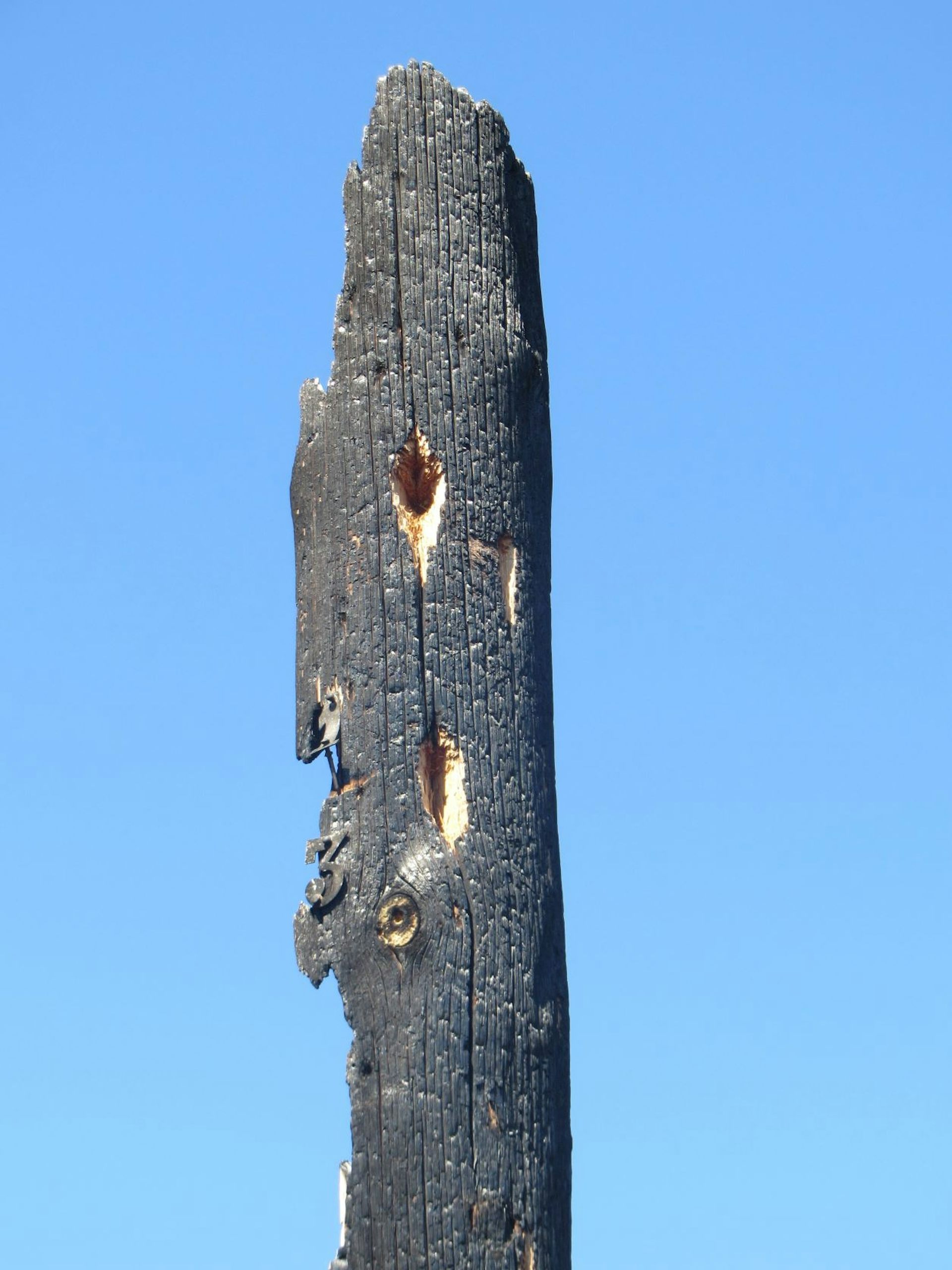 Marcas dejadas por los picapinos en un tronco quemado. facilitada por el autor