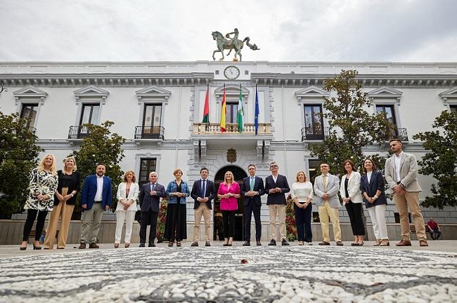 La alcaldesa con su equipo en una de las primeras fotos del gobierno municipal. Ayto. Granada archcivo